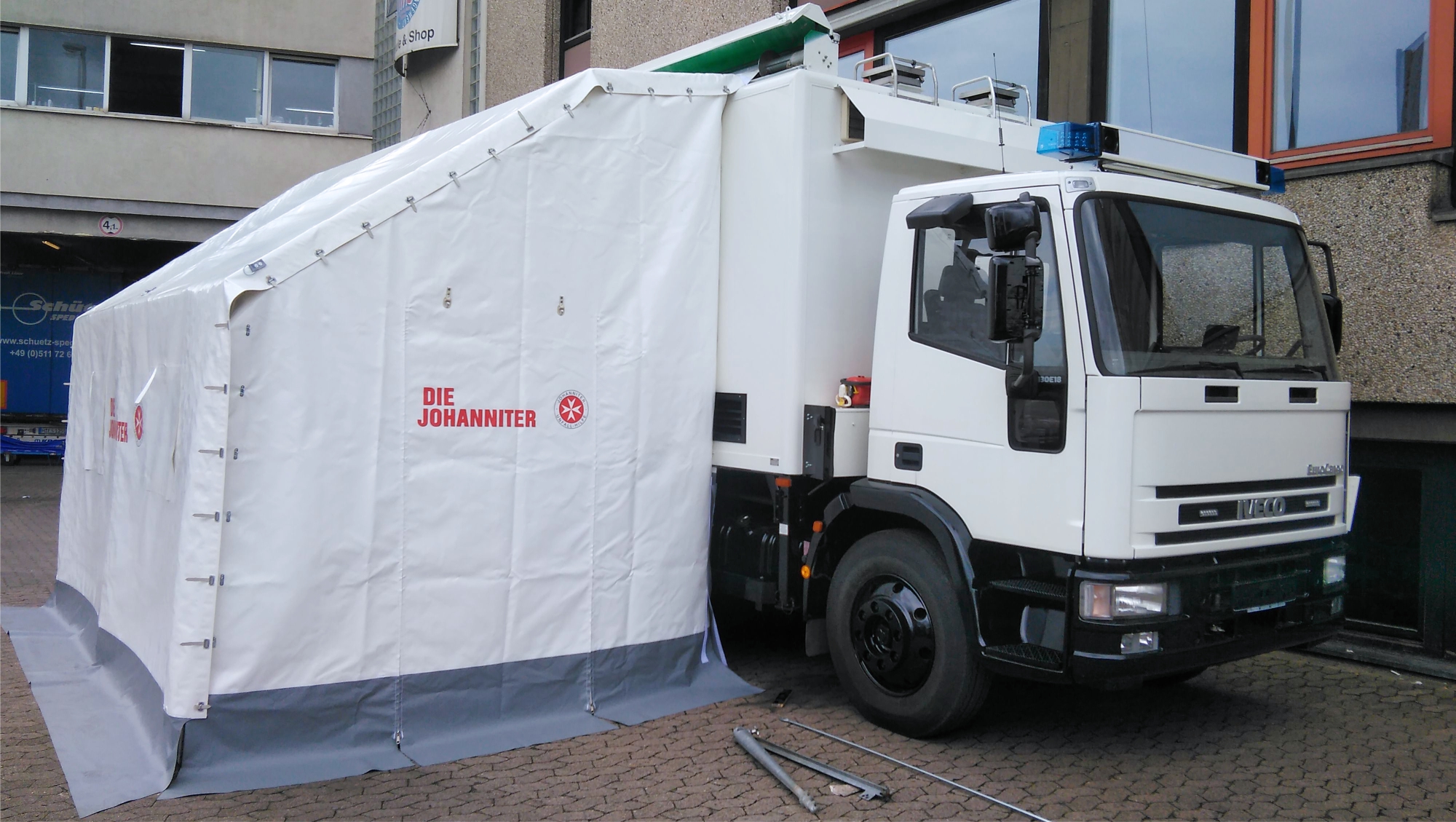 Zeltvorbauten für LKW- und Einsatzfahrzeuge für mobile Einsätze